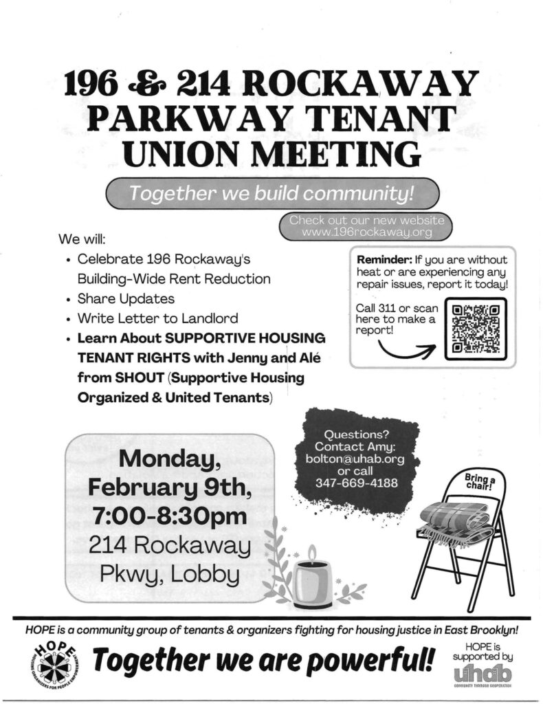 - Connect with other Brooklyn tenants
